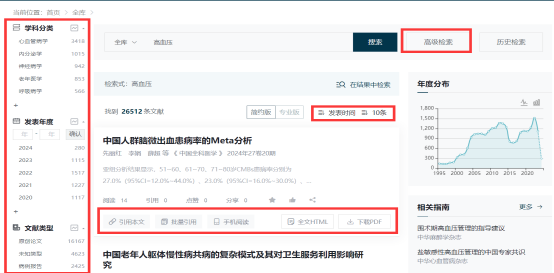 3、可对检索结果文献按不同条件做筛选,可下载或在线阅读文献。